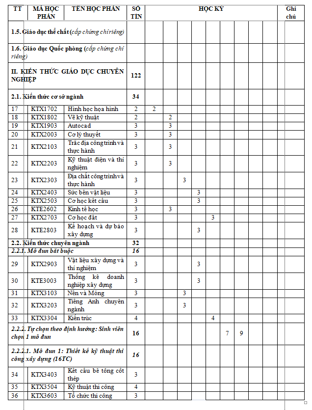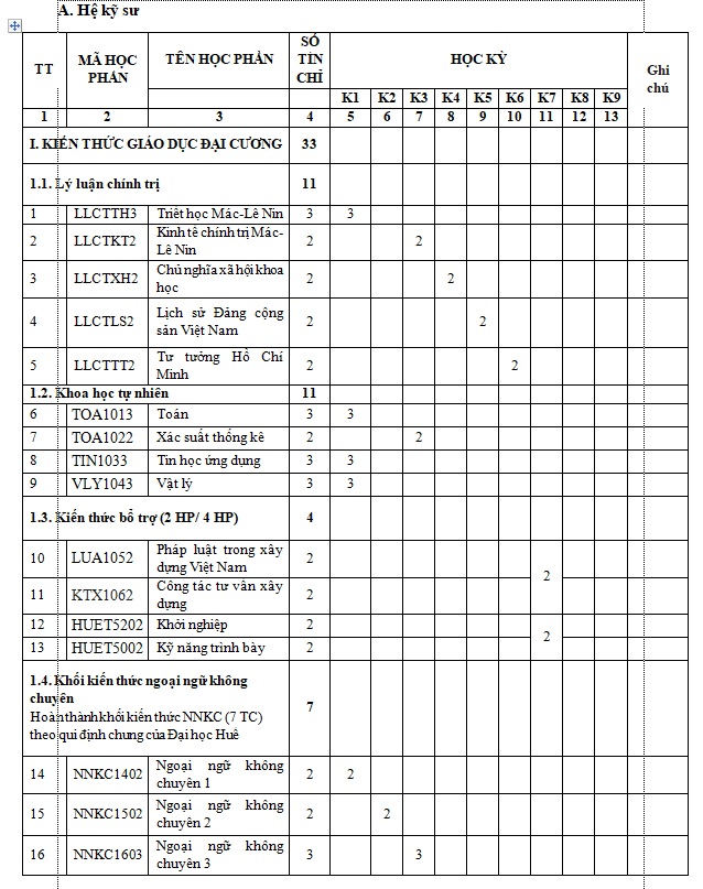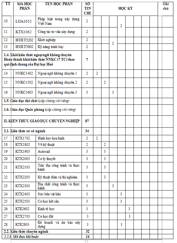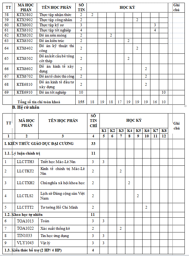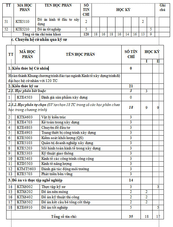 Hệ Cử nhân: 04 năm
